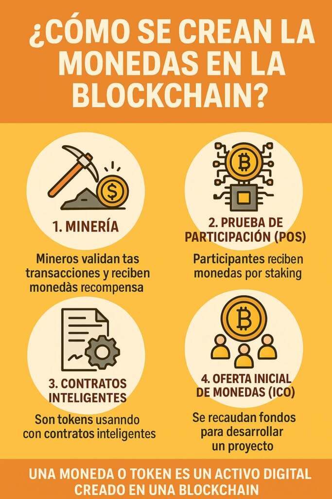 | Blockchain | Método principal de creación | Ejemplo de moneda |
