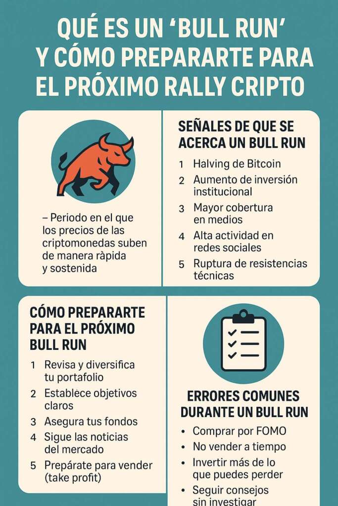En este artículo te explico qué es un Bull Run, cómo identificar sus señales y qué pasos seguir para prepararte antes de que comience el próximo gran rally del mercado cripto.