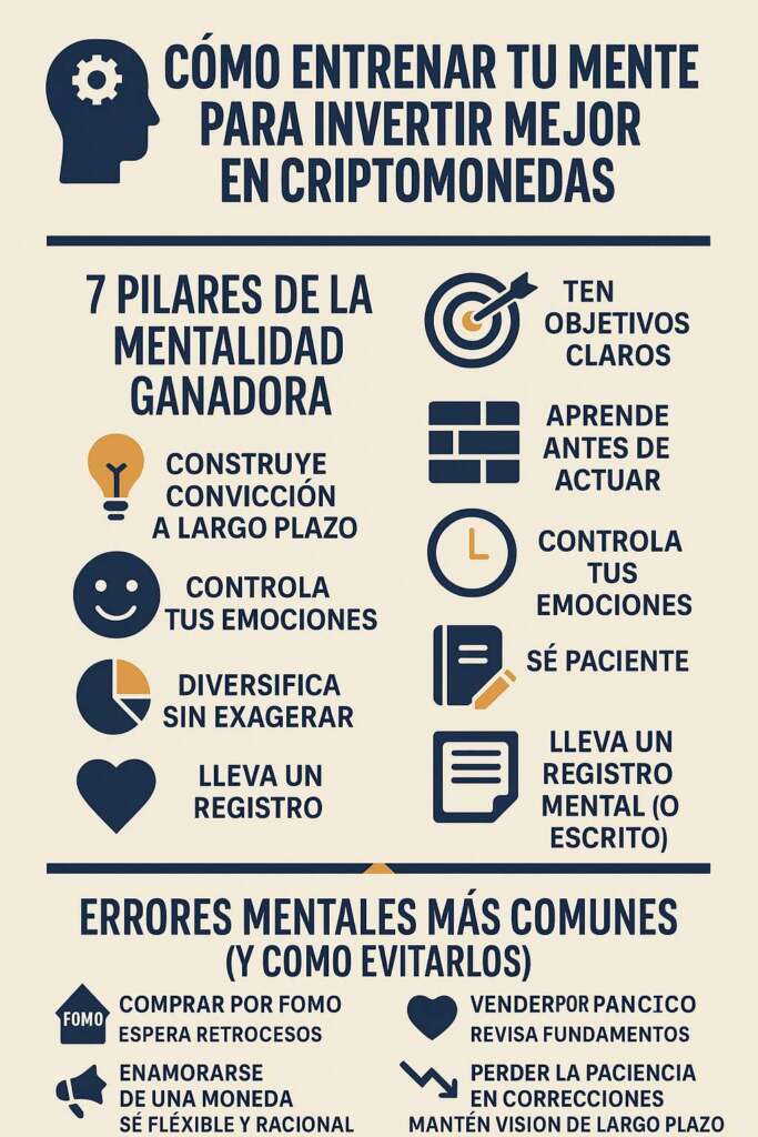 Invertir en criptomonedas no solo requiere conocimientos técnicos… también requiere mentalidad fuerte, disciplinada y estratégica. En 2025, los inversionistas que dominan sus emociones tienen mayores probabilidades de éxito que quienes simplemente siguen las modas del mercado.