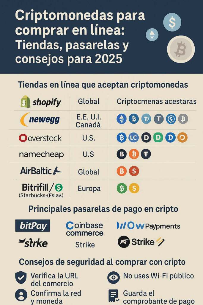 🛒 Criptomonedas para comprar en línea: Tiendas, pasarelas y consejos para 2025
