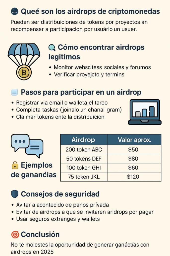 🙌 Empieza hoy mismo a buscar tus primeros airdrops, crea una wallet segura y ve aprendiendo paso a paso. Con constancia, podrías ganar cientos o incluso miles de dólares en tokens gratuitos.